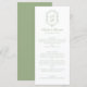 Menu Formal Classic Sage Green Monogram Crest Wedding