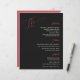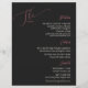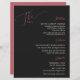 Esses menus elegantes e delgados de folha de papel formal jante de 8,5" x 11" apresentam letras magenta e ósseas em um fundo preto com a mensagem "O Menu", com espaços reservados para 2 aperitivos, 3 entradas, 2 lados e 2 sobremesas.