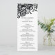 Cartão preto e branco elegante preto chique formal do menu do casamento da série | dos artigos de papelaria do casamento do laço do cartão | do menu do casamento do laço preto chique moderno com flores e as folhas pretas em um estilo chique do laço. Estilo de pia batismal formal sofisticado, com tipografia chique clássica. Cartão na moda do menu do casamento. O *** NOTA POR FAVOR: Este cartão não é feito do laço real. Se você muda a pia batismal ou o tamanho da pia batismal, pode alterar-se como seus artigos de papelaria imprimem. Imprimirá a maneira que você a vê em seu monitor. Eu não verei seu cartão uma vez que você o pede, e Zazzle não editará qualquer coisa (erros tipográficos, alinhamento, etc.).