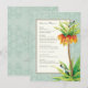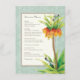 PALETA DE CORES: azul, tan, verde, amarelo e laranja do aqua com aqua. COLEÇÃO DO DESIGN: Este é um menu formal do comensal para sua recepção de casamento. Azul claro do aqua no fundo pintado mão subtil azul da cor damasco com uma área de texto de creme macia e uma beira morna do cinza do taupe. É coberta no design uma ilustração botânica watercolored mão uma flor elegante e sofisticada do fritillaria e um par de libélulas azuis e pretas do aqua. O verso é a mesma cor damasco macia a combinar. Todo este design é feito dos trabalhos de arte originais da aguarela por Audrey Jeanne Roberts. PROJETE: Este convite vem em diversos colorways: tan, bege cremoso, verde do aqua, aqua azul e um verde macio morno. Pode igualmente ser criado sem libélulas se você prefere porque são separados no design original.