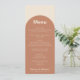 Este cartão de cardápio de casamento formal minimalista do arco terrorista é perfeito para um casamento rústico. O design apresenta uma bela fonte em um terraço para embelezar seu evento.