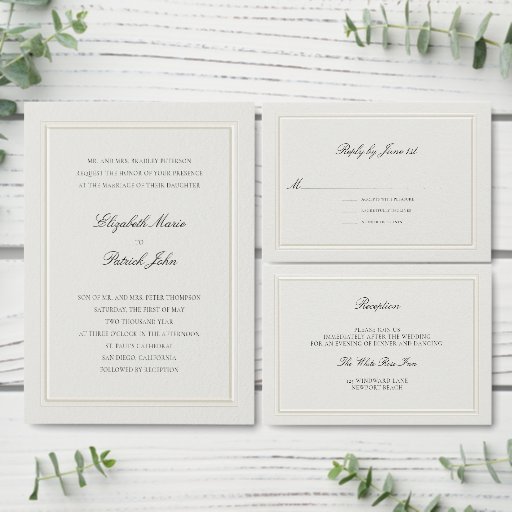 Menu Formal Modern Classic Elevated Frame Ecru Wedding