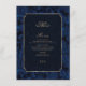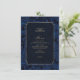 Menu Elegante de recepção de casamento em um estilo mais formal com um layout clássico de quadros dourados e texto com uma borda ornamentado paisley. Este exemplo adiciona um toque moderno com seu fundo em azul marinho brilhante. Adicione os detalhes do evento em uma fonte serif para o recurso tradicional.O menu mostrado aqui também apresenta uma modelo para adicionar facilmente as seleções de menu, as iniciais e a data do casamento. Procure ID767 para ver outras opções de cores para este design.