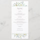 Este menu faz parte da nossa coleção de casamento Mistletoe Fosco. Um belo design névoa de aquarela em tons suaves de inverno, verde, azul e roxo. Um borrão de gelo e o brilho das bagas de ouro fazem disto um design elegante e elegante para uma celebração de casamento no inverno.