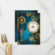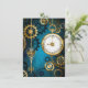 Turquesa, texturizada, fundo steampunk com latão e engrenagens douradas, chave prateada e relógio. Estilo Steampunk.