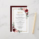 Cartão de cardápio floral com cor de água geométrica romântica elegante e moderna apresenta um buquê de "burgundy / marsala", rosa pincel, roxo, rosas de cor de água de pêssego com folhagem correspondente. Perfeito para um casamento no outono/no meio do verão. Por favor, encontre mais designs e variações na minha loja de "blisswedingpaperie". E sinta-se à vontade para contactar-me para mais personalizações ou itens correspondentes