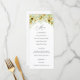 Um cartão de menu com uma cascata de girassol e verde-aquarela. Personalize com o texto do menu para um brunch, almoço ou janto.