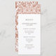 Estes bonitos cartões de cardápio de casamento apresentam uma elegante cor damasco rosa de ouro brilhante em um fundo branco. Observe que a cor damasco dourada rosa está impressa digitalmente e não é realmente brilhante.