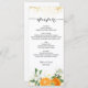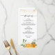 Bring refined elegance to your celebration with the Gold Citrus Orange Script Floral Wedding Menu – a fresh, timeless design that pairs the richness of deep orange with the delicate beauty of white blooms. The contrast is striking yet graceful, creating a look that feels both classic and modern.