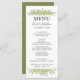 O verde-coloração aquosa elegante destaca o topo e o fundo deste Menu de casamento. Personalize com suas informações em caracteres chic CREAM. CORRESPONDENDO a itens na nossa loja.