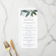 Este cartão de menu de casamento elegante e moderno apresenta uma forma geométrica em rose gold falso rodeada por belos ramos de verde.