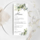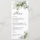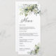 Menu Greenery Wedding. Este convite de casamento na moda e elegante apresenta um lindo verde floral de cor aquosa, pintado manualmente, eucalipto floral. Localizar itens correspondentes na Coleção de Verduras Fluviais Eucalyptus Eucalyptus.