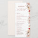 Elevem a sua mesa de casamento com este cartão de cardápio floral de cor azul. Apresentando um arranjo sonhador de capim-d'água, rosas macios, palmas secas e flores silvestres sobre um fundo pastel claro (#fdf6f0), este design de menu elegante traz uma moderna, mas romântica, à sua celebração. Perfeito para casamentos boêmicos, rústicos, jardins ou praias, este menu unilateral mostra suas seleções de refeições com encanto refinado. Fácil de personalizar com seu próprio texto e fontes para corresponder ao seu estilo de casamento. Um belo toque final para qualquer recepção de casamento na moda.