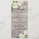 Modelos de Cartões Rack de Menu de Casamento - Flores Hydrangea Hydrangea, adoráveis Aquarelas brancas Elegantes, e Luzes de Cordas no Fundo Russo da Madeira. Um Design Perfeito Para O Seu Grande Dia! Todo Estilo De Texto, Cores, Tamanhos Podem Ser Modificados Para Ajustado Das Suas Necessidades.