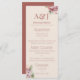 Este elegante menu de casamento apresenta um tema floral elegante. Na parte superior, são impressas duas iniciais do monograma. Você pode personalizar o menu para incluir suas próprias iniciais e opções de comida personalizadas. Um delicado buquê de flores de aquarelas hydrangea é impresso no canto superior direito, e outro no canto inferior esquerdo. As hidrangas são um rosa romântico e uma pincelada.