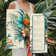 Menu de Iridescência Tropical, um menu incrivelmente desenhado que apresenta um padrão inspirado no tropical com um toque sutil e iridescente. Perfeito para a praia, jardim e casamentos de destino, este menu adiciona um acabamento luminoso e elegante ao seu evento enquanto mostra seus pratos com estilo. Ela melhora o encanto tropical de sua celebração, fornecendo um olhar polido e sofisticado. Este design é criado usando uma imagem AI editada digitalmente.