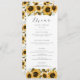 Cartão de menu de jantar de casamento floral rústico com ilustração de aquarela de girassóis amarelos com respiro de bebê.