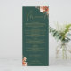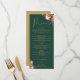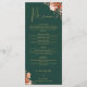 Este menu de casamento floral rústico elegante pode ser personalizado com suas informações em tipografia dourada sofisticada em fundo verde esmeralda. Criado por Thisisnotme©