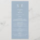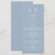 Este elegante cardápio de casamento em azul poeira e dourado pode ser personalizado com as iniciais do seu monograma e as informações do cardápio de casamento em tipografia sofisticada. Criado por Thisisnotme