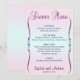 Este elegante menu de janto em tons de pastéis cor-de-rosa, roxo e azuis com um leve toque de brilho pode ser personalizado. Você pode alterar a fonte e as cores da maioria do texto e até mesmo a cor do plano de fundo. Projetado por Amelia Carrie e vendido exclusivamente por meio do GlitterInvitations.com Nota: Esta é uma reprodução gráfica de impressão ou trabalho de arte e não contém nenhuma falha de brilho.