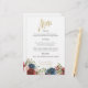 Linda floral de aquarela em tons de blues, burgundy e blush, menu jantado com sotaques de texto em ouro para elogiar nosso convite de casamento.