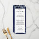 Um menu clássico de janto que oferece iniciações, cursos principais e seleções de sobremesa. Os títulos são gravados em uma caligrafia clássica de fontes preta e as seleções de menu estão em um texto de bloco fácil de ler. O menu é totalmente personalizável para qualquer ocasião. Um lindo e profundo convite para casamento azul de safira com galeria de arte com aquarelas de qualidade de marinhos azuis e esprigs de eucalipto pintados com detalhes refinados.