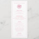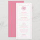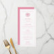 Menu janto cor-de-rosa e branco com ilustração da casca do mar antiga. Perfeito para um casamento elegante de praia ou de iate clube ou outro evento especial. Layout é para 4 pratos. Clique em "personalizar" para adicionar mais texto ou remover elementos, como a ilustração da shell.