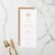 Menu janto bege e branco com ilustração da casca do mar antiga. Perfeito para um casamento elegante de praia ou de iate clube ou outro evento especial. Layout é para 4 pratos. Clique em "personalizar" para adicionar mais texto ou remover elementos, como a ilustração da shell.