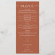 Este elegante menu de casamento de guião cardíaca de terracota pode ser personalizado com as suas informações em tipografia quic. Projetado por Thisnotme©