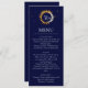 O menu apresenta um refinado monograma de sol e lua no topo, simbolizando harmonia e amor. Colocado sobre um fundo azul rico em marinho com delicados sotaques estelares, este menu com tema celeste adiciona elegância a cada configuração de mesa. Perfeito para casais que procuram trazer um toque de romance e sofisticação para a sua decoração de casamento.