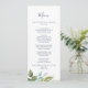 Este cartão de janto de casamento verde é perfeito para um casamento elegante no meio do verão. O design botânico apresenta um arranjo exuberante de cor d'água pintada, eucalipto, verde e folhas verdes com sutis manchas de flores rosadas e cor-de-rosa. Este menu pode ser usado para recepção de casamento, janto de ensaio ou qualquer evento.