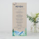 Este cartão de janto de casamento kraft Rocky Mountain é perfeito para um casamento ao ar livre. O design apresenta uma paisagem de natureza selvagem pintada, azul e verde, com pinheiros de aquarela, pássaros e montanhas em um fundo falso de papel kraft claro. Este menu pode ser usado para recepção de casamento, janto de ensaio ou qualquer evento. Por favor, observe que isto não está impresso em papel kraft real. É um gráfico de alta qualidade feito para parecer papel kraft.