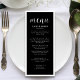 Adicione um toque de elegância à sua recepção de casamento com o nosso menu de janto de casamento minimalista. Ideal para recepções formais, jantas de casamento em escala superior, ou eventos de pré-casamento de chic, esta design elegante e sofisticada complementa uma variedade de estilos de casamento. O fundo negro eterno com um layout minimalista garante que ele ajustado perfeitamente com temas de casamento modernos e clássicos. Totalmente personalizável para apresentar as suas seleções de janto, este cartão de menu oferece uma maneira prática e na moda para mostrar as suas opções de refeições e, ao mesmo tempo, adicionar um elemento refinado à decoração do casamento.