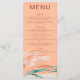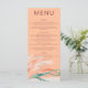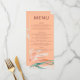 Elevem sua capa de casamento com este menu moderno de janto de casamento. Apresentando elementos botânicos de cor d'água abstrato em tons quentes e românticos, este design de dois lados apresenta sua refeição cuidadosamente curada na frente e um filme de na moda de arte com seus nomes no verso. Perfeito para casamentos elegantes, modernos ou inspirados em ventre.