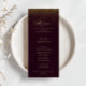 Este cartão de janto de caligrafia com brilho de ouro é perfeito para um casamento rústico. O design simples e na moda apresenta a tipografia clássica e a tipografia do rico em ouro com brilho em fundo burgundy. Este menu pode ser usado para recepção de casamento, janto de ensaio, chá de panela ou qualquer evento.