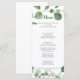 Este cartão de janto de caligrafia moderna do eucalipto é perfeito para um casamento simples. A design apresenta galhos e folhas botânicas elegantes e desenhadas a aquarela e desenhadas à mão. Este menu pode ser usado para recepção de casamento, janto de ensaio, chá de panela ou qualquer evento.