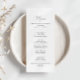 Este elegante e simples cartão de janto de caligrafia é perfeito para um casamento rústico. O design simples e elegante apresenta a tipografia de scripts clássicos e ricos em preto e branco. Este menu pode ser usado para recepção de casamento, janto de ensaio, chá de panela ou qualquer evento.