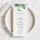 Este cartão de janto para caligrafia tropical é perfeito para um casamento moderno. A design apresenta palma verde de cor d'água pintada à mão e folhas de bananeira bem organizadas em belos buquês. Este menu pode ser usado para recepção de casamento, janto de ensaio, chá de panela ou qualquer evento.