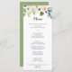 Este simples cartão de janto de caligrafia verde floral é perfeito para um casamento tropical. A design apresenta rosas brancos, cor-de-rosa e pincéis pintados à mão, embutidos em folhagem verde, inspiradora beleza artística. Este menu pode ser usado para recepção de casamento, janto de ensaio, chá de panela ou qualquer evento.