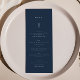 Cartões de menu de Mesa de marinho simples e elegantes, azuis, de 4x9", Cartões de de Casamento, Menu Janto plano na caligrafia moderna do script. Você pode encontrar uma coleção de itens correspondentes e tamanho 5x7 em nossa loja VelvetPaperCo.