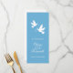 Duas pomas brancas, simples e de dois lados, com duas fitas azuis no menu de janto de recepção de casamento. Desenvolvido exclusivamente por Sarah Trett para www.mylittleedenweddings.com