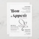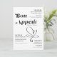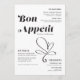 Estes menus de janto de casamento de 5" x 7" com letra preta e um título estilizado, "Bon Appetit", em letras grandes pretas com sotaque cardíaco num fundo neutro. O menu tem espaços reservados para 2 aperitivos, 2 entradas e 2 sobremesas e os nomes dos casais de casamento.