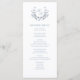 Elevem sua recepção de casamento com este cardápio de casamento, com caligrafia elegante simples e uma noiva refinada e monograma nobre. Projetado em azul na moda poeirento, este janto de recepção modelo mostra um clássico motivo de louros de coroa com delicada folha verde, acrescentando um eterno e toque sofisticado à sua mesa de ensaio. A design de tipografia tradicional e as iniciais de ampersas clássicas criam uma estética personalizada e elegante. Perfeito para um casamento chic