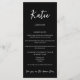 Este lindo Menu de Casamento e nome de assento de mesa apresenta caligrafia manuscrita com um design branco e preto minimalista. Se você está procurando um visual elegante de assento de mesa, além de economizar dinheiro em placas de assento de mesa, esse é o design perfeito para você. Além disso, você pode usar este menu para qualquer ocasião que não tenha que ser apenas seu casamento! Basta editar o texto para ajustado do evento, assim como as cores de texto e de fundo. Pressione o botão 'Personalizar mais' e comece a criar.