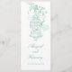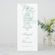 Desenho gráfico gráfico de linha de casal de pássaros, de dupla face, de gaiola aberta de pássaros pendurada em uma árvore florescente com corações em cinza verde e branco. Design de casamento moderno da gaiola de pássaros azul. Bonito tom pastel verde sobre uma cor branca de fundo. Edite este menu de janto de recepções de casamento com o seu próprio texto de menu. Ideal para os convidados do casamento lerem e pedirem na sua refeição especial do dia do casamento. Desenho de arte exclusivo e design por Sarah Trett www.sarahtrett.com