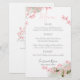 Abre-se o cardápio cor-de-água cor rosa para elogiar o nosso convite de casamento. Menu de cor-de-rosa suave e cinza com prigs liláticos florais cor-de-rosa minimalistas e obrigado pessoal que você envia no lado oposto do cartão.