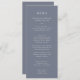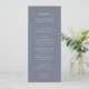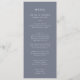 Este simples cartão de cardápio de cinza azul é perfeito para um casamento moderno. O design boho mínimo apresenta um texto branco clássico em um plano de fundo azul de cinza. Este menu pode ser usado para recepção de casamento, janto de ensaio ou qualquer evento.