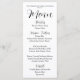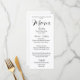 Simples estilo, cartão de menu branco jante para o seu casamento que apresenta um roteiro preto e estilizado junto com as suas informações personalizadas. Edite o cartão de menu e substitua os nomes de casamento e a data juntamente com os itens de menu que serão servidos na sua recepção de casamento. Selecione o estilo do cartão de menu conforme desejado. Projetado para coordenar com nossa coleção de Casamento de Estilo Simples Branco.