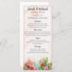 Celebre seu dia especial com este encantador menu janto de casamento de flor silvestre e aquática. Apresentando flores vibrantes de primavera jardim e uma abertura macia de aquarela no fundo, este elegante layout vertical exibe lindamente seus aperitivos, prato principal, sobremesas e bebidas. Perfeito para casamentos ao ar livre, vinhedo, jardim ou rústicos, este design de cardápio combina facilmente com nossos convites de casamento, cartões RSVP, cartazes e outros artigos de papelaria. Personalize com seus próprios detalhes de menu e data de casamento para adicionar um toque elegante e coeso às suas mesas de recepção. Ideal para jantas sentados, recepções de coquetéis e comemorações do estilo buffet. Um eterno que os convidados adorarão!