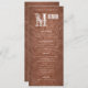 Um pouco ocidental a este cardápio sofisticado, mas rústico, de janto de casamento. "Menu" em tipo decorativo sobre fundo de madeira com texto branco. Escolha sua cor para o convite para o casamento de textura de madeira. Clique em "Personalizar" e use as amostras à direita para alterar a cor de fundo. A ferramenta conta-gotas fornece ainda mais amostras, e o link "avançado" abre todo o espectro. Você também pode copiar e colar um valor hexadecimal se tiver um.